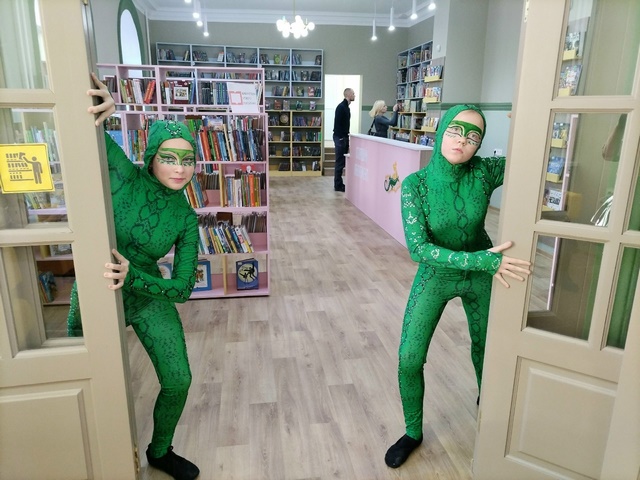 Гостей встретили живописные герои знаменитых сказов Павла Петровича и провели театрализованную экскурсию по обновленным залам. Благодаря новым дизайнерским решениям, библиотека преобразилась в малахитовую сказку!