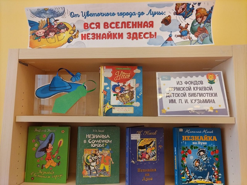 Сотрудники «Кузьминки» тщательно и с особым вниманием отбирают литературу из своих фондов, ориентируясь на тематические запросы коллег. В прошлом году это были: «Художники-иллюстраторы детской литературы», «Военное детство», «Сказки Пермского края». В наступившем году две подборки художественных произведений – «Путешествие сквозь Зазеркалье: 155 лет с книгой Льюиса Кэрролла» и «От Цветочного города до Луны: вся вселенная Незнайки здесь!» – уже отправились в библиотеку с. Гамово Пермского МО. Целый месяц маленькие читатели будут наслаждаться сказочными историями знаменитых писателей! Примечательно, что даже заголовки выставок оформлять не нужно. Их приготовил наш талантливый художник-дизайнер!