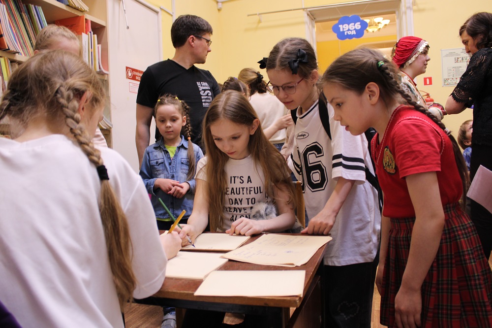 Как только на город опустились сумерки, дети сразу же отправились в увлекательное путешествие во времени! За один час квеста ««Кузьминка» в картинках» они побывали на разных этапах истории библиотеки им. Л.И. Кузьмина: от её открытия в 1966 году и до наших дней, а еще создали свой проект библиотеки будущего.